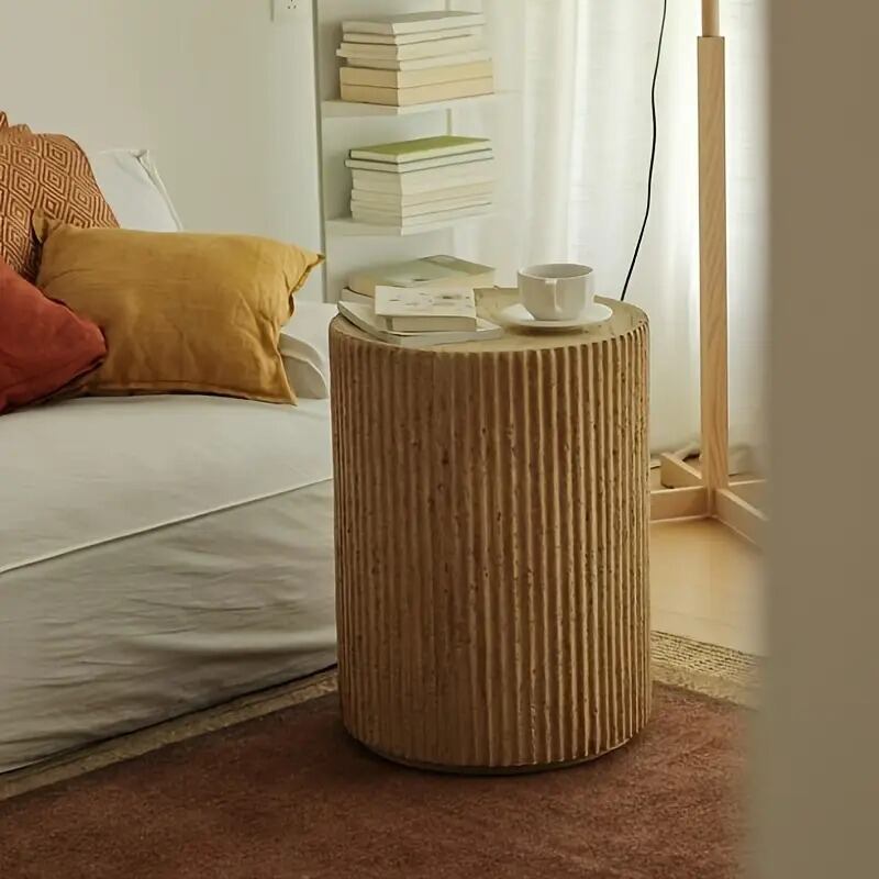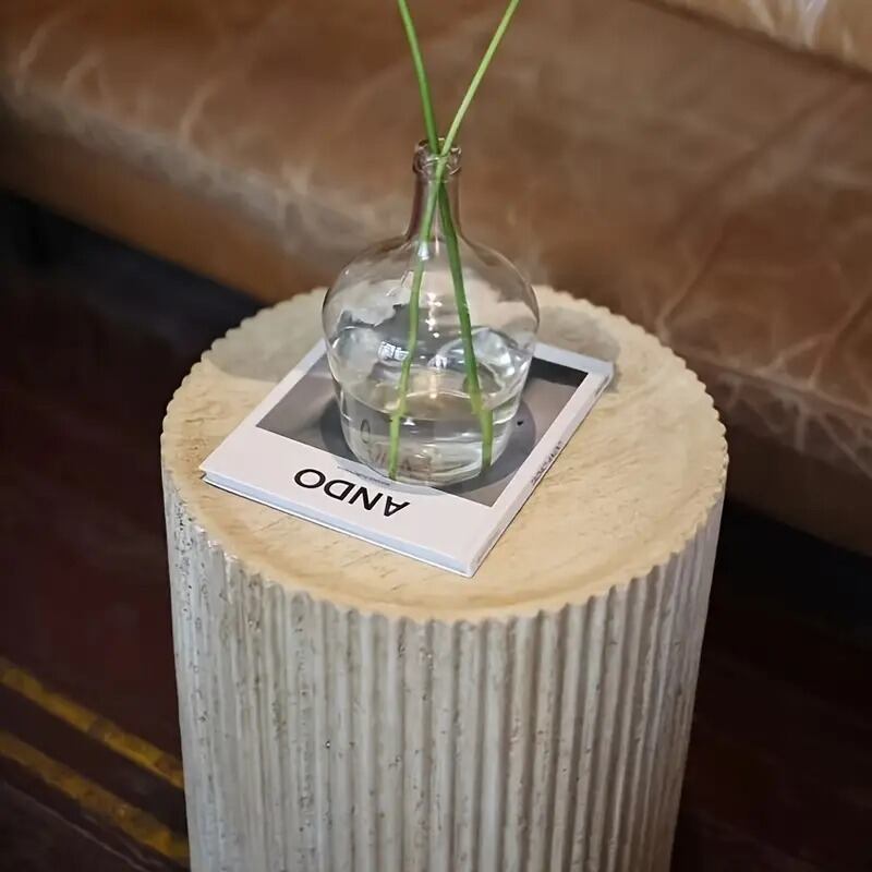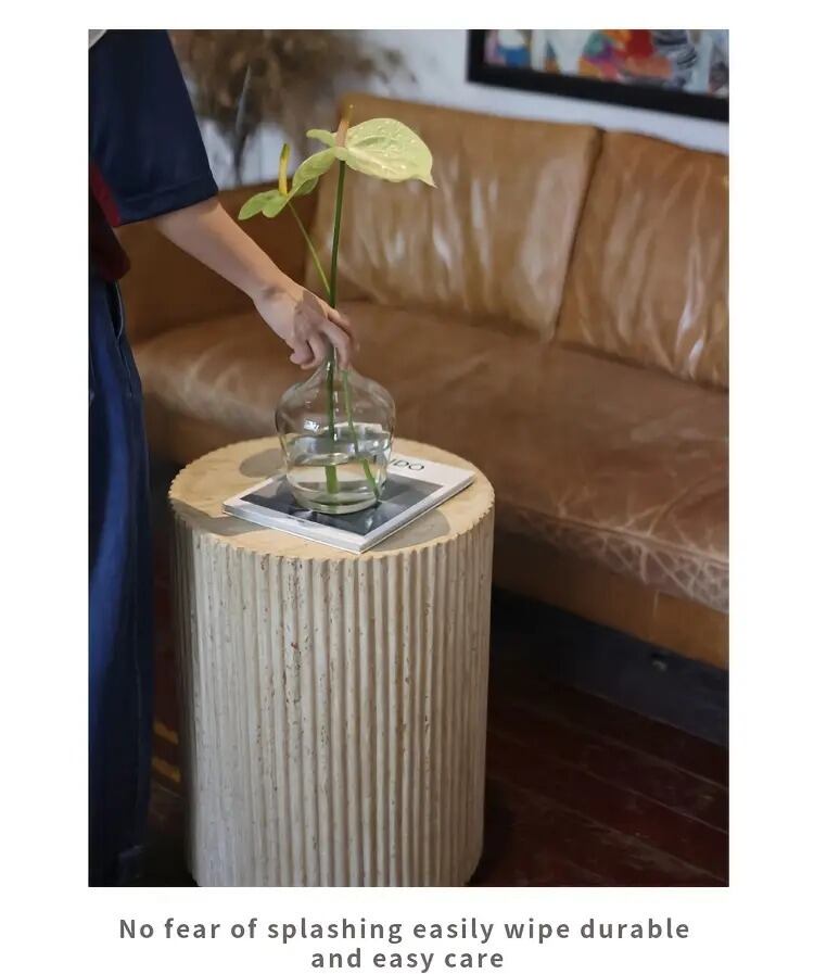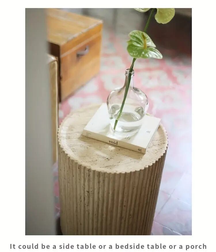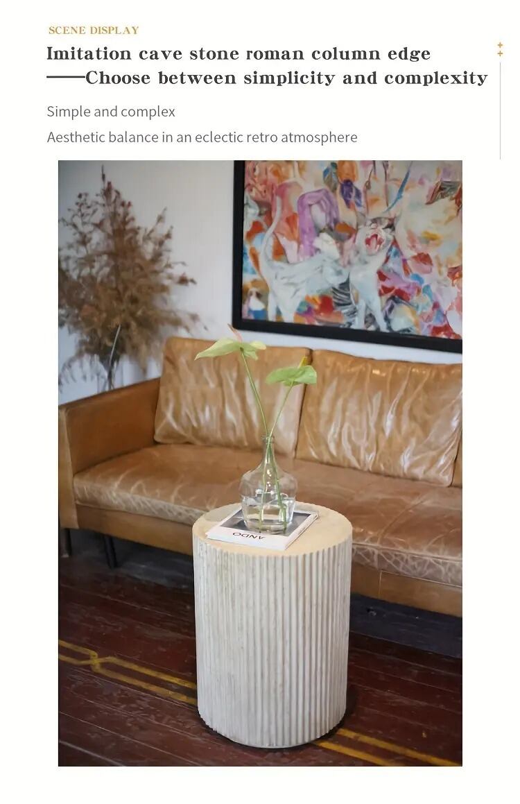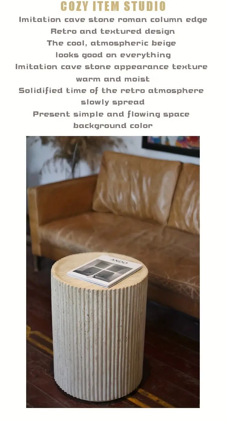 サイドテーブル 円筒形 ストーン ヴィンテージ風 コンクリート調 ペデスタルベース ポータブル コーヒーテーブル おしゃれ かわいい インテリア 北欧 石目調 イミテーションストーンデザイン アンティーク風 モダン クラシック リビング 寝室 書斎 ベランダ