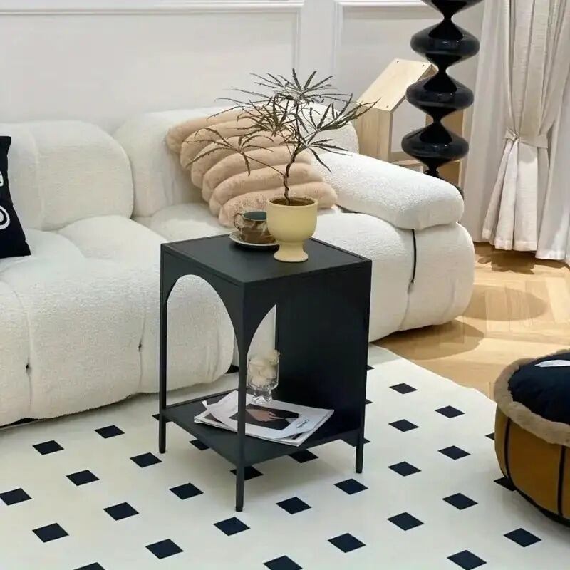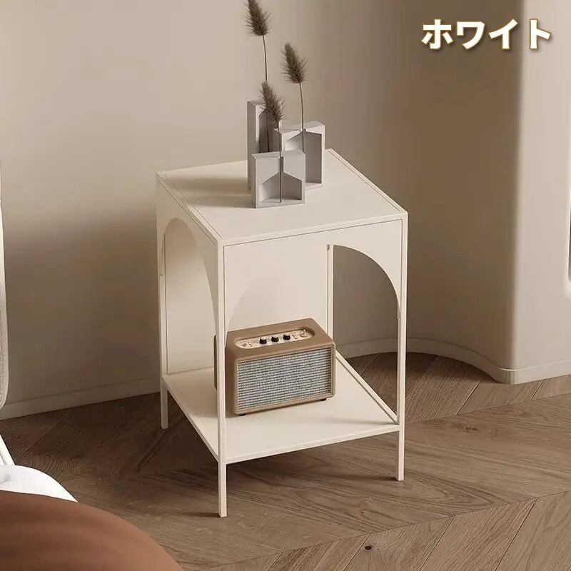 サイドテーブル モダンデザイン ブラック ミニマルスタイル メタルフレーム ホワイト おしゃれ かわいい インテリア 北欧 コンパクト 多機能収納付き シェルフ一体型 エンドテーブル リビング ベッドルーム 書斎 ナイトテーブル コーナーテーブル サブテーブル | Calm+(カームプラス) - 北欧風ナチュラルインテリア・モダン家具専門店