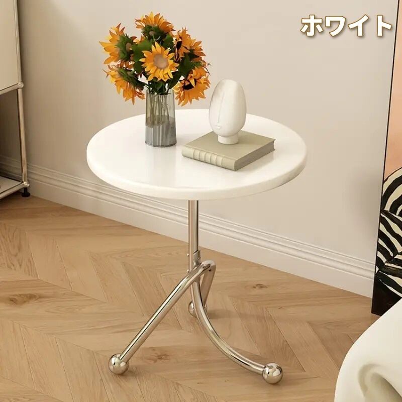 円形のフォルムが柔らかな印象を与え、ソファ横やベッドサイドに最適なマルチテーブルとして活躍。