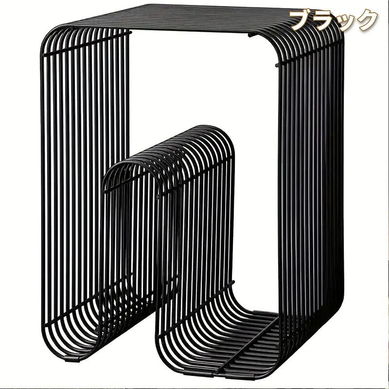 サイドテーブル スクエア型 メタル製 幾何学デザイン マガジンラック付き 本棚 おしゃれ かわいい インテリア 北欧 壁掛け収納付き コーナーテーブル ソファサイド モダンデザイン エンドテーブル カフェスタンド リビングルーム 玄関 ディスプレイラック