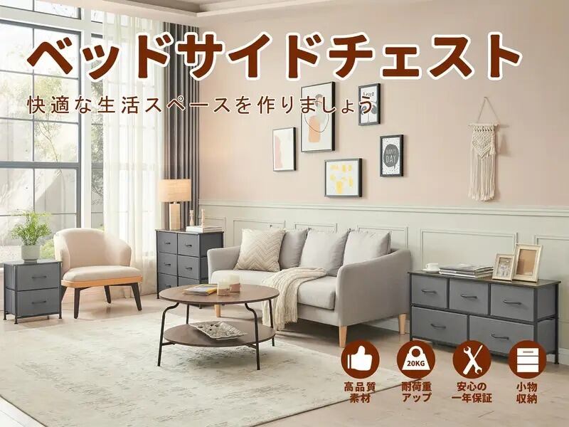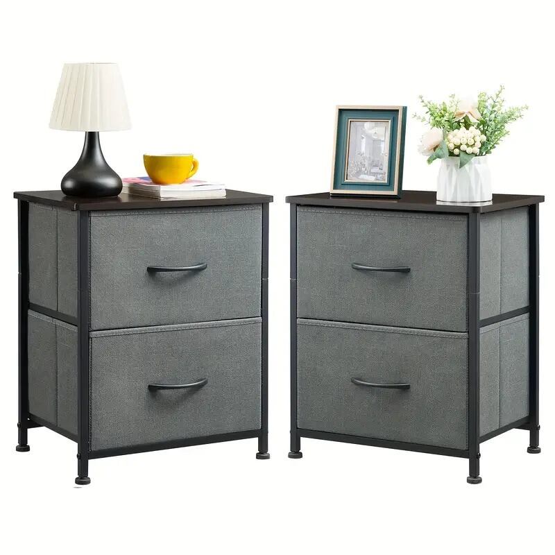 サイドテーブル チェスト 2個セット モダン メタルフレーム 無地 キャビネット ラック モダンデザイン おしゃれ かわいい インテリア 北欧 2段引き出し付き ナイトスタンド ファブリックボックス付き コンパクト設計 スタイリッシュベッド リビングルーム | Calm+(カームプラス) - 北欧風ナチュラルインテリア・モダン家具専門店