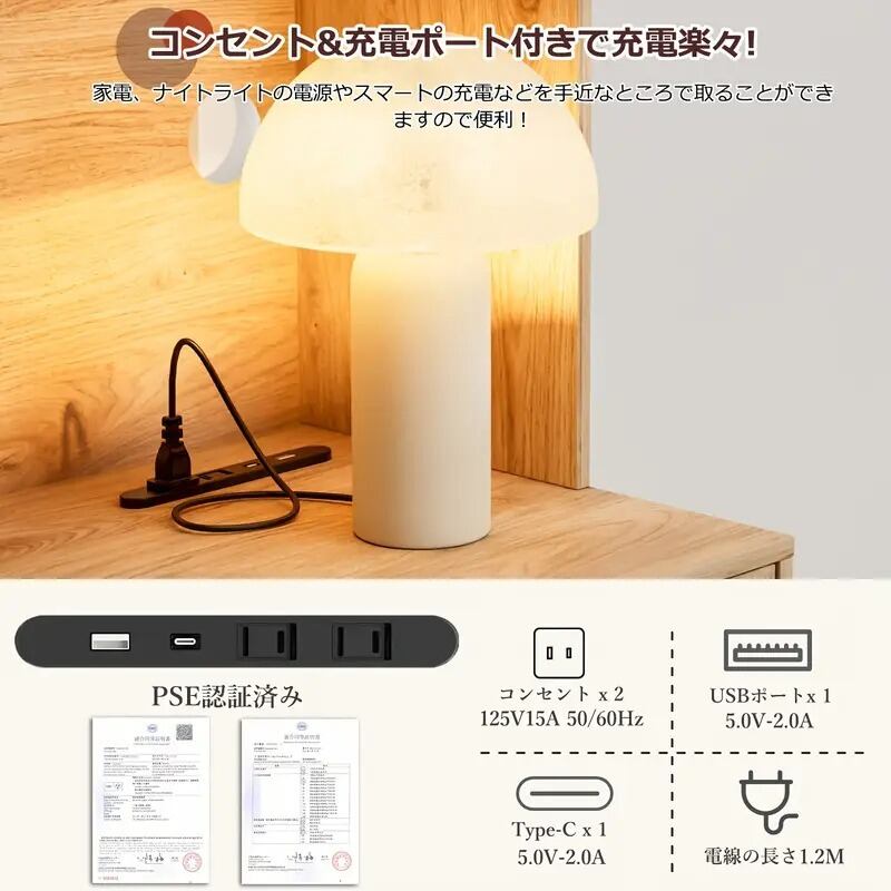 さらに、コンセントとUSBポートが付いているので、充電も簡単。