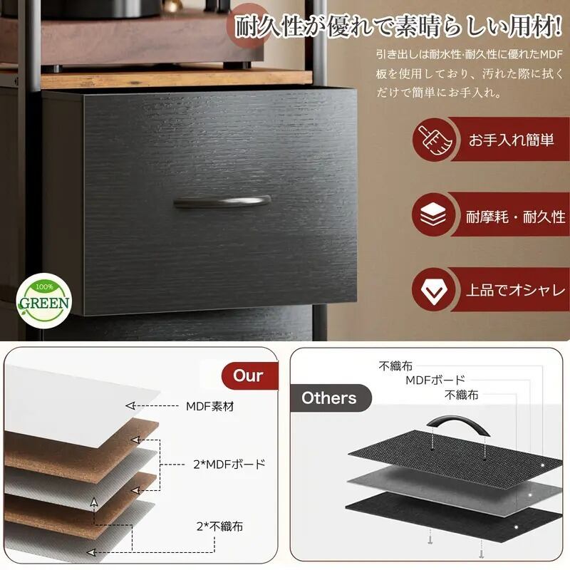 オープンラックと引き出しの組み合わせで、整理整頓も思いのまま。