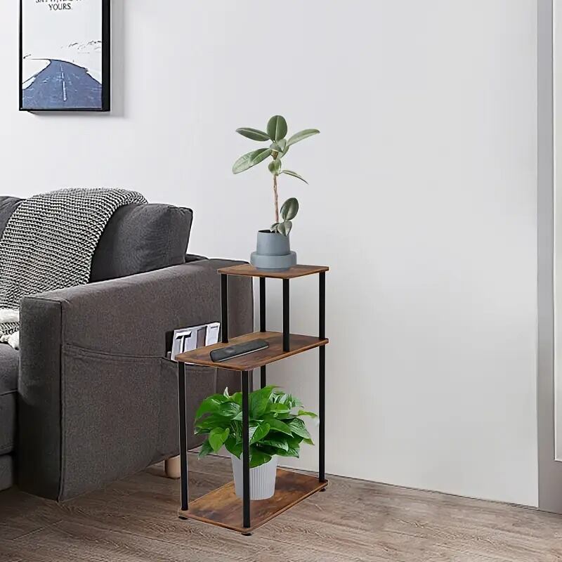 チェスト キャビネット オープンラック 階段状 棚 ダークブラウン サイドテーブル 収納 モダン 3段 おしゃれ かわいい インテリア 北欧 省スペース シンプル リビング 寝室 木目調 40×67×23.5cm