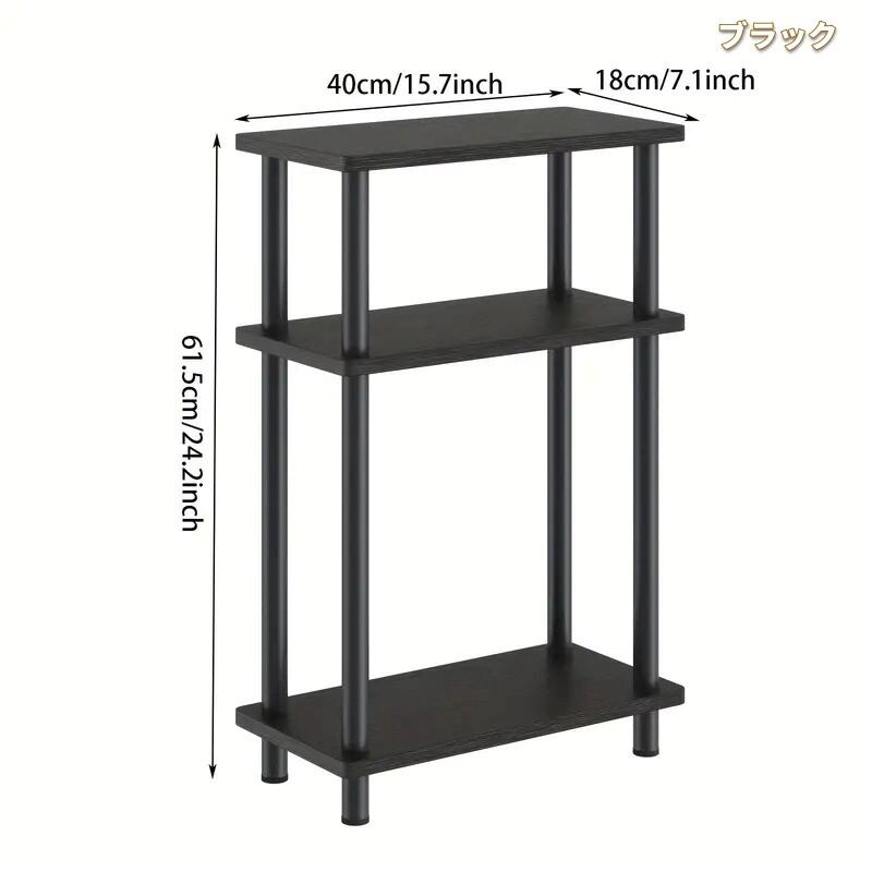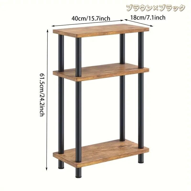 チェスト キャビネット オープンラック 3段 ホワイト 縦長 サイドテーブル ワゴン 隙間収納 キャスター付 おしゃれ かわいい インテリア 北欧 省スペース リビング 寝室 シンプル ナチュラル 木製 ブラウン×ブラック ブラック 40×61.5×18cm