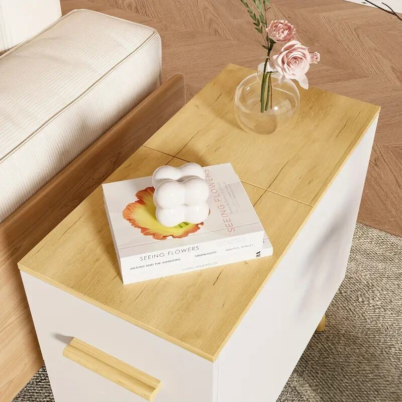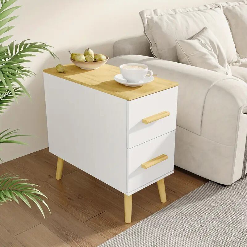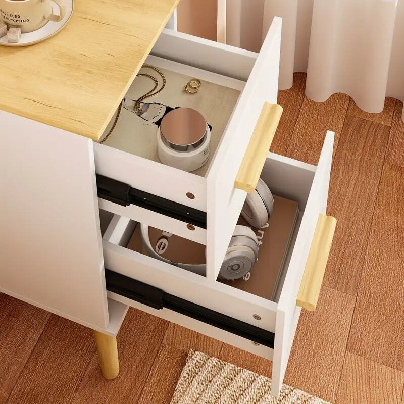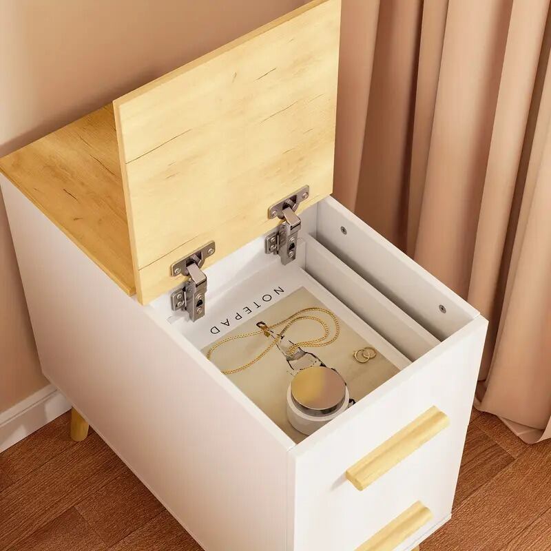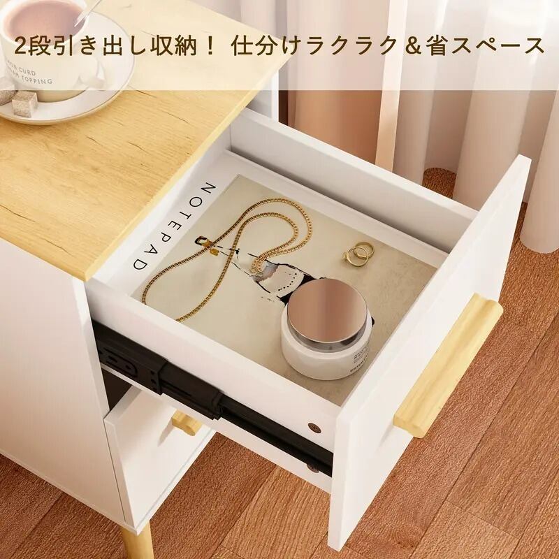 2段引き出しのサイドテーブルとしても活躍し、必要なものをすっきりと収納できます。