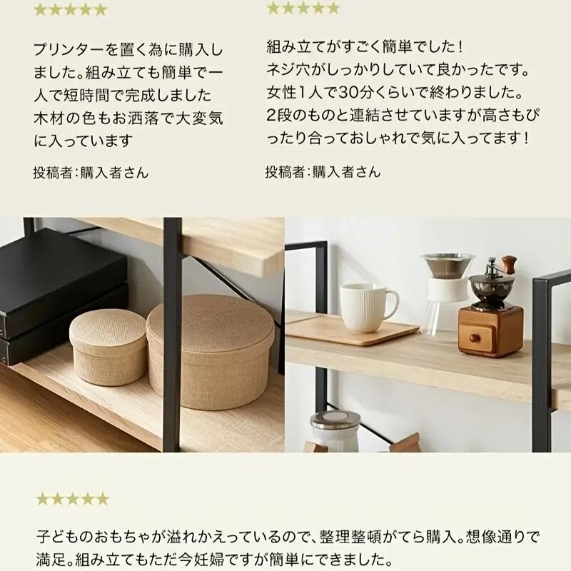 スチールフレームと木製棚の組み合わせが、ナチュラルでモダンな雰囲気を演出します。