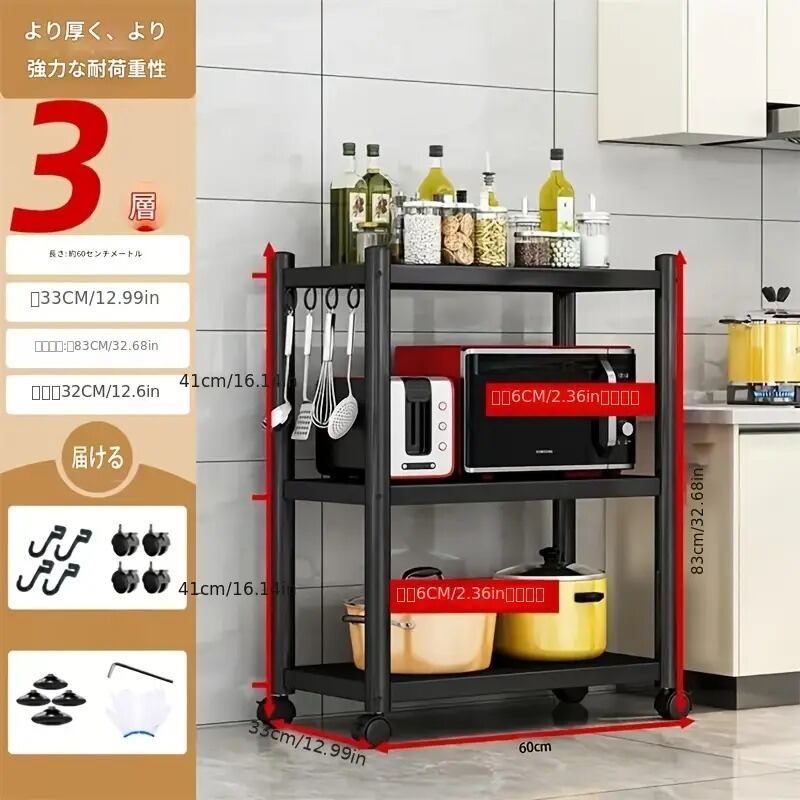 ラック シェルフ キッチン収納 メタルシェルフ 電子レンジ台 家電収納 フック付き おしゃれ かわいい インテリア 北欧 収納棚 調味料ラック 調理器具 北欧風 ナチュラル風 シンプル モダン キッチンボード キッチンラック 3層 60×83×33cm 4層 | Calm+(カームプラス) - 北欧風ナチュラルインテリア・モダン家具専門店
