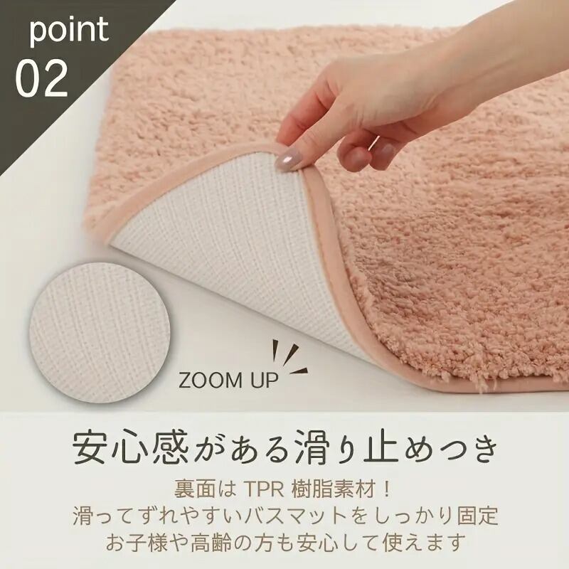 バスマット ふわふわ マイクロファイバー 丸洗い対応 大判サイズ おしゃれ かわいい インテリア 北欧 清潔感 洗面所 トイレ キッチン 玄関 フロアラグ 吸水速乾 滑り止め付 ポリエステル 40×60cm 毛足2cmもあり 50×80cm