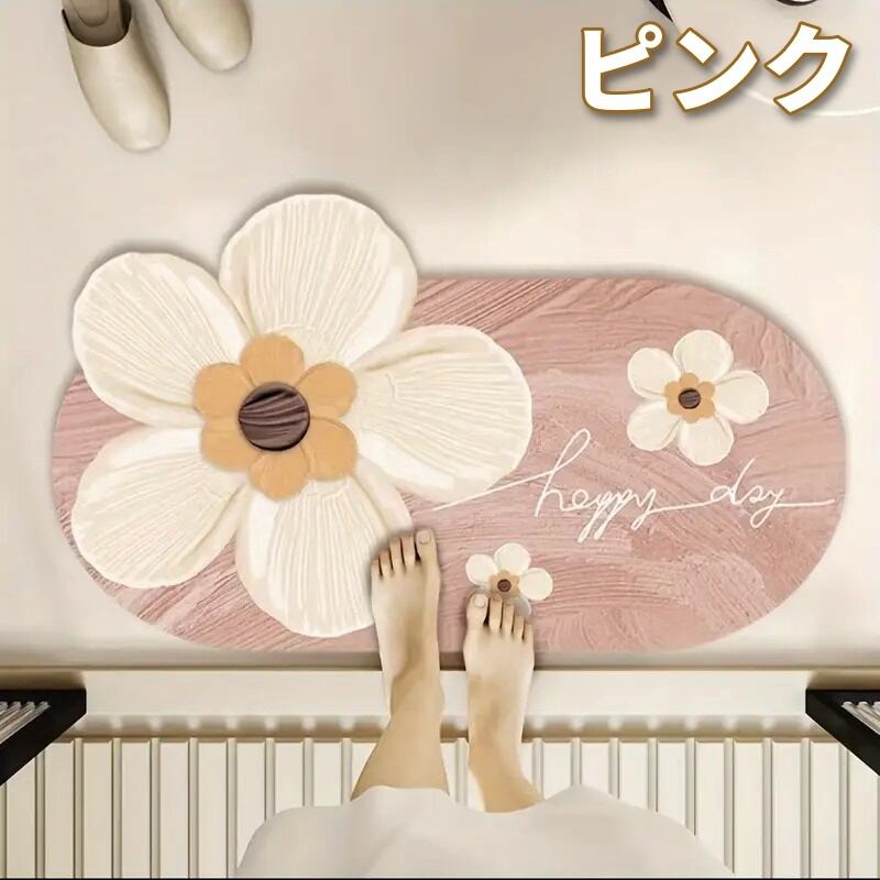 バスマット 花 フローラル 楕円形 おしゃれ かわいい インテリア 北欧 癒し系 母の日 プレゼント ギフト 吸水速乾 トイレ 洗面所 バスルーム 玄関 滑り止め付 ピンク ブルー グリーン 40×60cm 40×80cm | Calm+(カームプラス) - 北欧風ナチュラルインテリア・モダン家具専門店