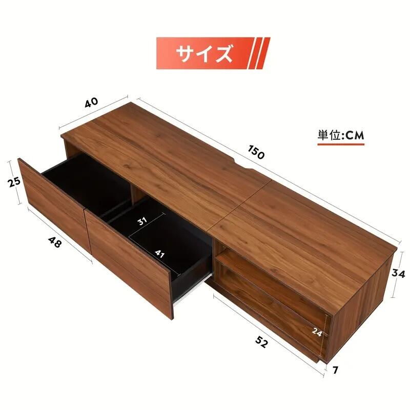 テレビ台 木目調 ローボード 幅150cm 65インチ対応 引き出し付 おしゃれ かわいい インテリア 北欧 シンプル スタイリッシュ AV収納 TVスタンド TVキャビネット 棚付き テレビラック リビング収納 大容量 モダンテイスト 150×40×34cm | Calm+(カームプラス) - 北欧風ナチュラルインテリア・モダン家具専門店