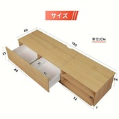 幅150cmのローボードは、65インチまでのテレビに対応し、シンプルでスタイリッシュなインテリアにぴったりです。