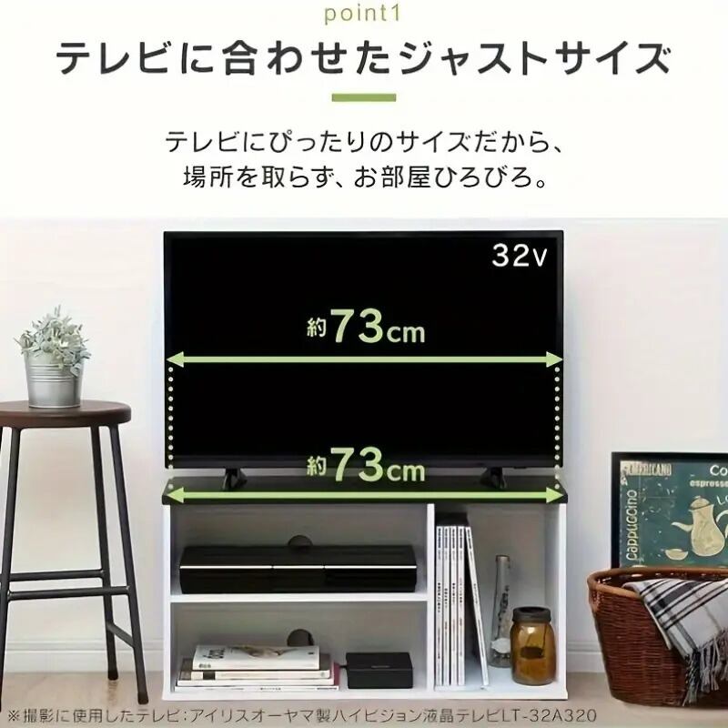 32インチ対応の幅73cmで、コンパクトなリビングにもぴったりフィット。