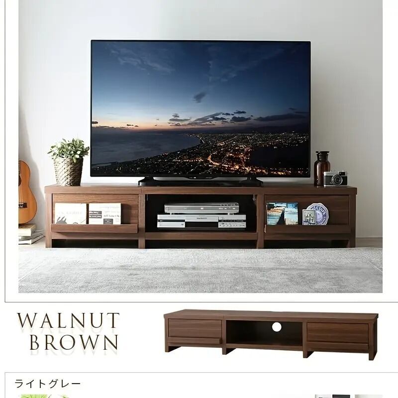 木目調のローキャビネットは、シンプルでありながらおしゃれなインテリアにぴったり。