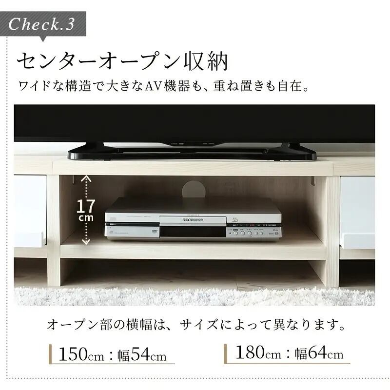 幅150cmで60インチのテレビにも対応し、リビングをスタイリッシュに彩ります。