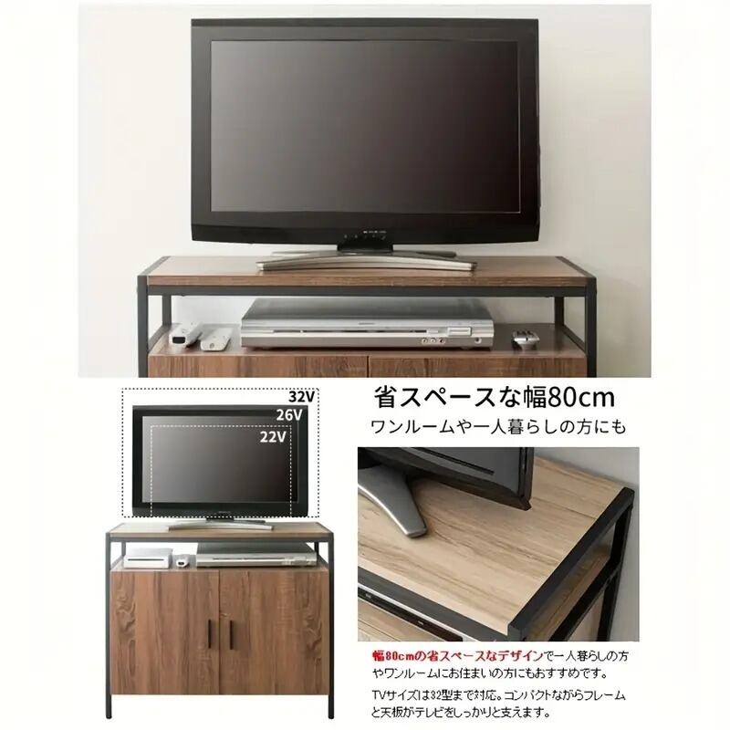 テレビ台 ハイタイプ 木目調 幅80cm 扉付き 大容量 おしゃれ かわいい インテリア 北欧 シンプル 高級感 ナチュラル TVボード テレビボード TVスタンド リビング ダイニング 寝室 仕事場 ゲーム収納 ディスプレイ 80×37×70cm | Calm+(カームプラス) - 北欧風ナチュラルインテリア・モダン家具専門店
