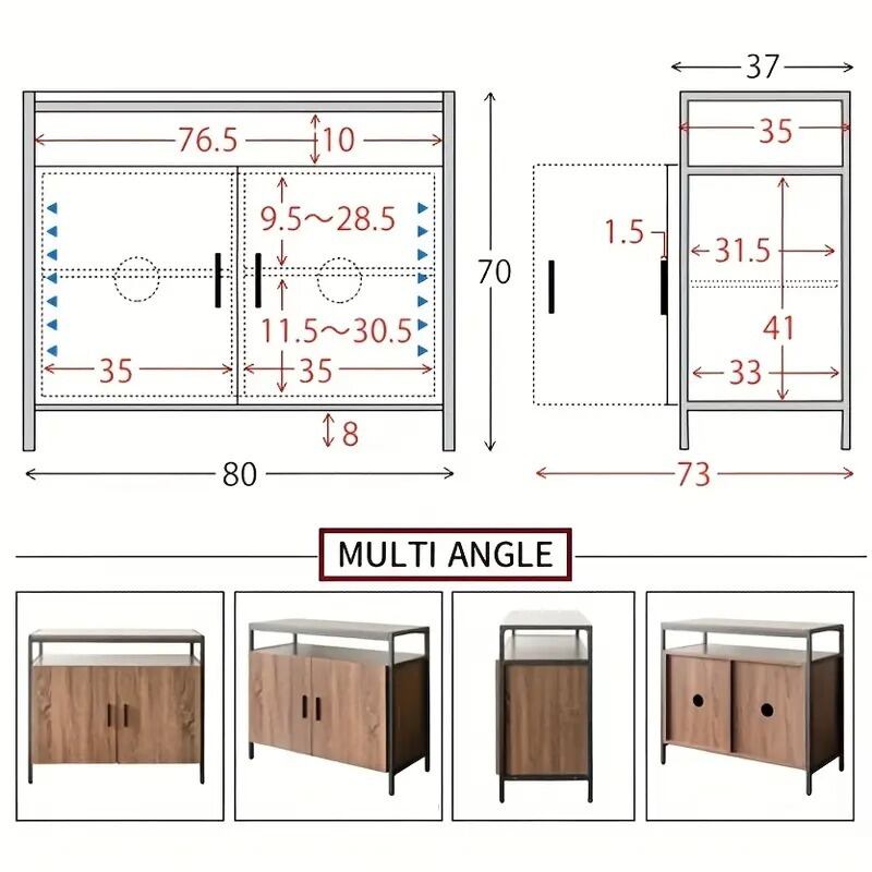 幅80cmのコンパクトサイズながら、扉付きの大容量収納でリビングやダイニングをすっきりと整えます。