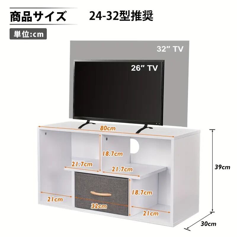 幅80cmのコンパクトなサイズで、24〜32インチのテレビにぴったりフィットします。