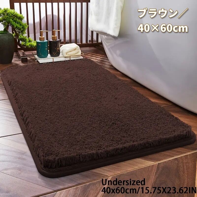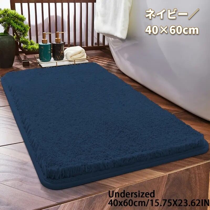 バスマット 無地 シンプル 角丸 ふわふわ インテリア 北欧 洗える 洗濯機可 吸水性 滑り止め ライトグレー ネイビー ベージュ ブラウン ホワイト 40×60cm 50×80cm