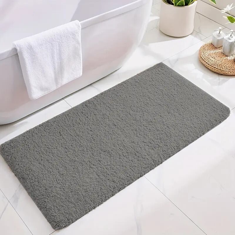 バスマット 無地 シンプル 角丸 ふわふわ インテリア 北欧 洗える 洗濯機可 吸水性 滑り止め ライトグレー ネイビー ベージュ ブラウン ホワイト 40×120cm