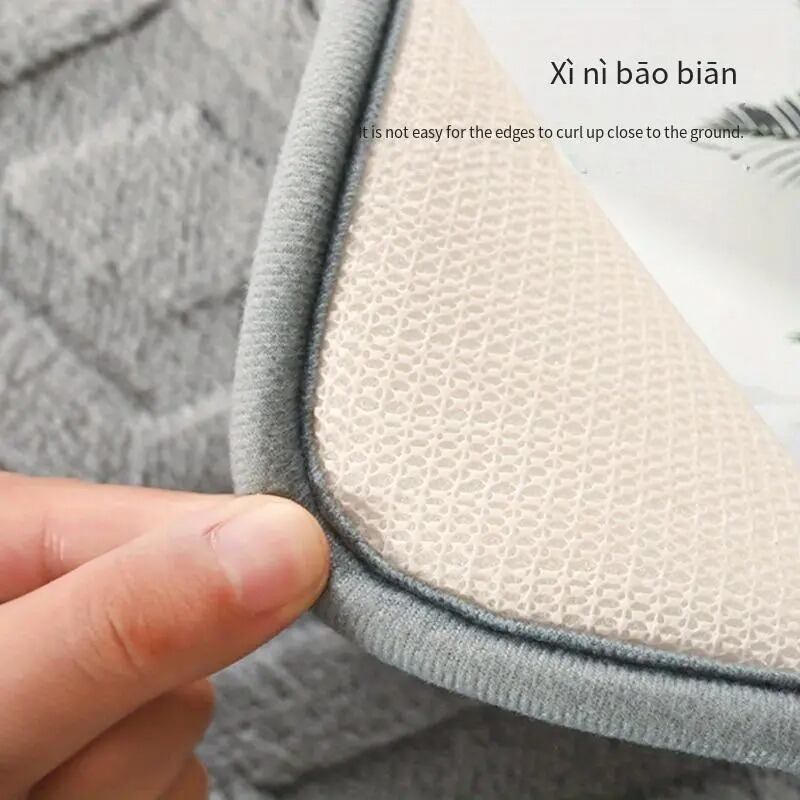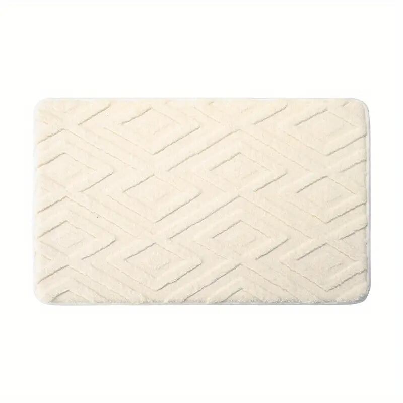 このバスマットは、幾何学模様のダイヤモンド柄が特徴で、シンプルでありながらモダンなデザインが魅力です。