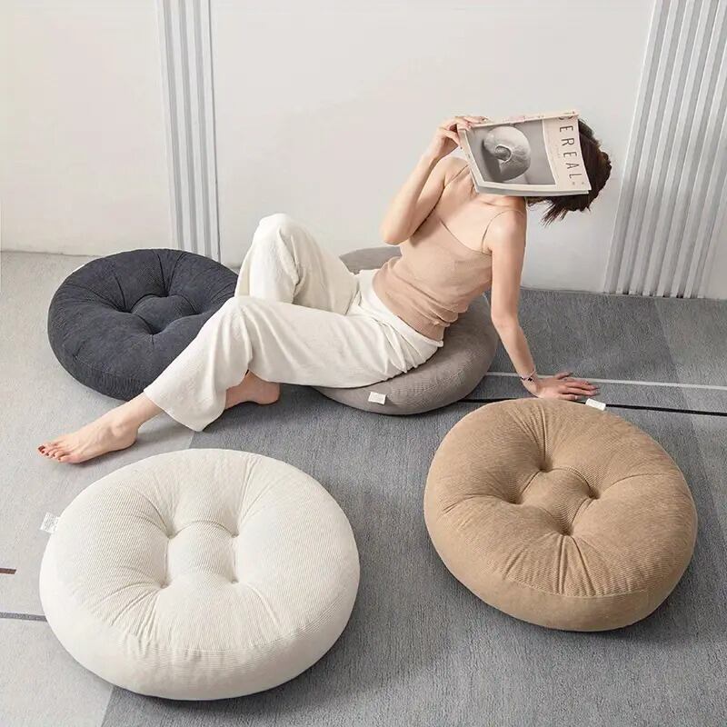 クッション 丸型 ボタン ふわふわ シンプル モダン かわいい おしゃれ ナチュラル スタイリッシュ インテリア 北欧 リビング ベッドルーム ソファ オフィス 車内 グレー ブラウン ホワイト ダークグレー 45×45×12cm 55×55×12cm