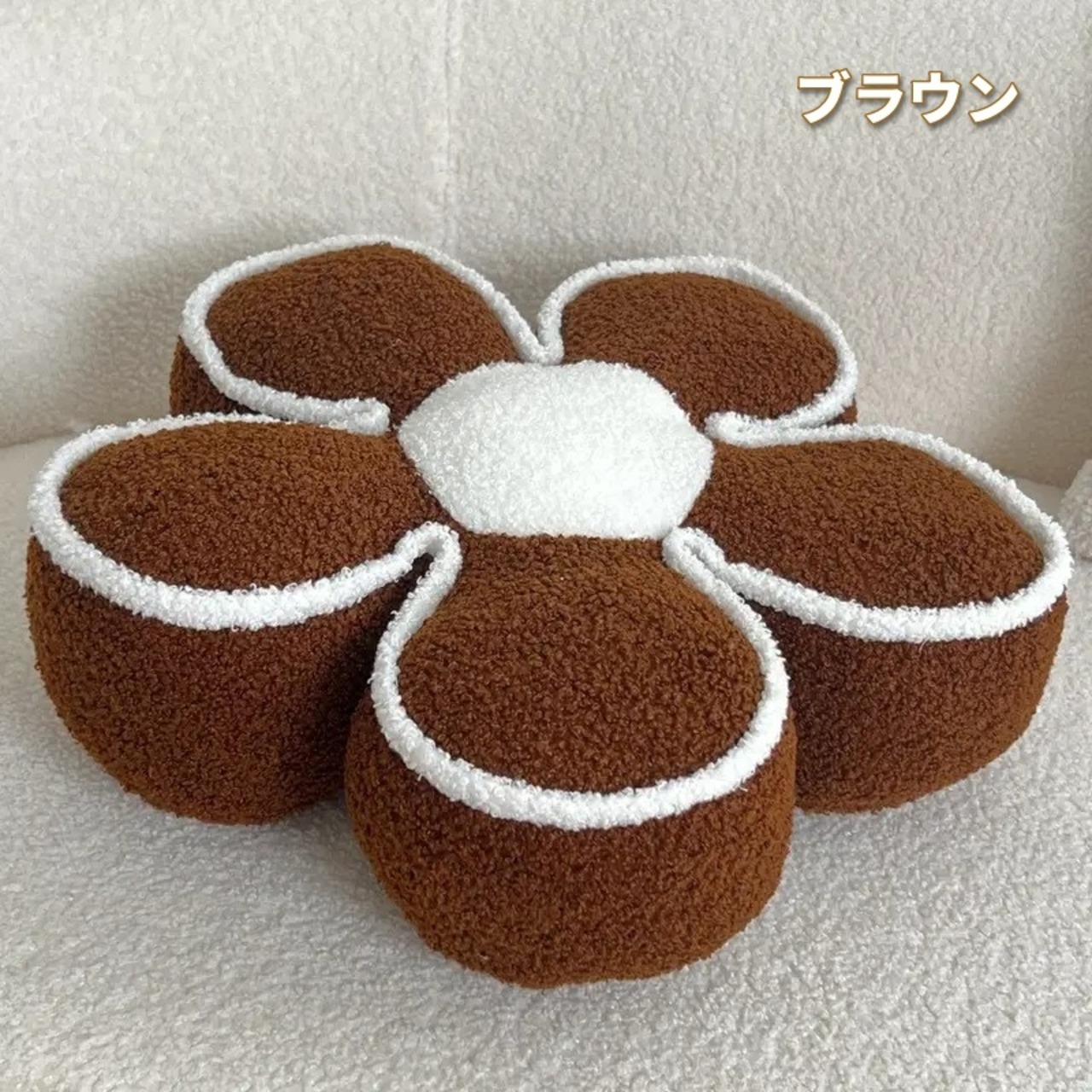 クッション 花型 フラワー ふちどり ツートンカラー ふわふわ 可愛い おしゃれ インテリア 北欧 分厚い 洗える 手洗い可 ベージュ ホワイト ピンク イエロー グレー ブラウン ブラック 42×43cm | Calm+(カームプラス) - 北欧風ナチュラルインテリア・モダン家具専門店