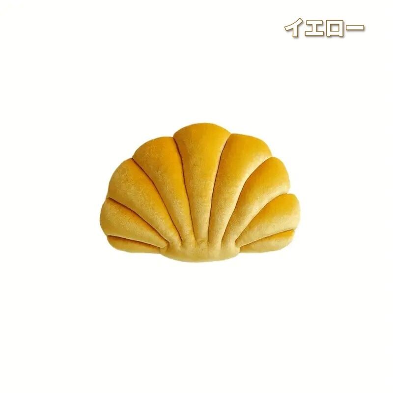 クッション 貝型 シェル ベルベット調 ふわふわ 可愛い おしゃれ インテリア 北欧 洗える 洗濯機可 ホワイト ピンク ブルー イエロー 25×34cm
