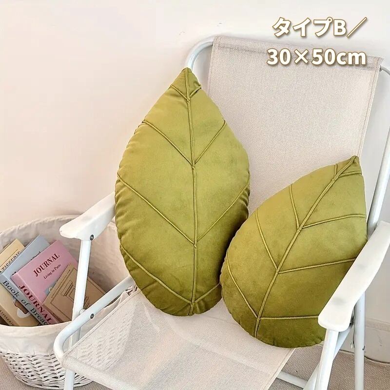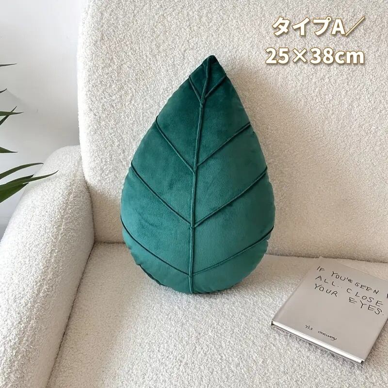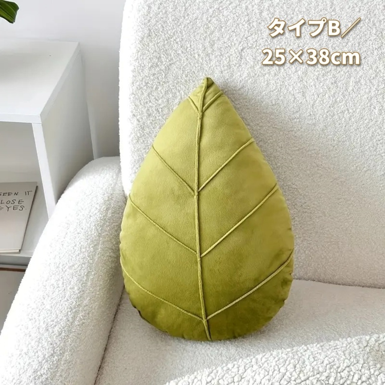 クッション 葉っぱ型 リーフ ベルベット調 可愛い おしゃれ インテリア 北欧 ナチュラル グリーン ポリエステル 25×38cm 30×50cm | Calm+(カームプラス) - 北欧風ナチュラルインテリア・モダン家具専門店