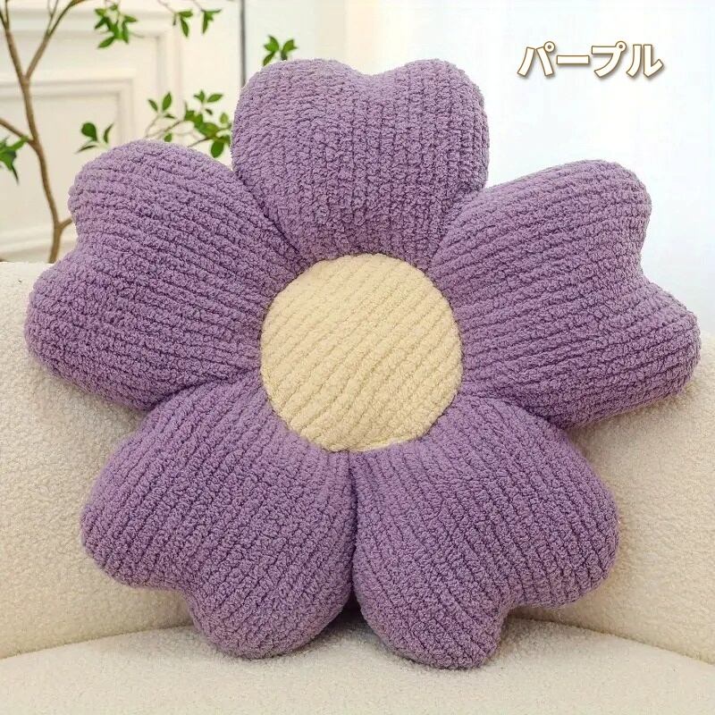 クッション 花型 フラワー ニット ツートンカラー ふわふわ 可愛い おしゃれ インテリア 北欧 洗える 手洗い可 ピンク イエロー ブルー グリーン パープル ホワイト 50×50cm | Calm+(カームプラス) - 北欧風ナチュラルインテリア・モダン家具専門店