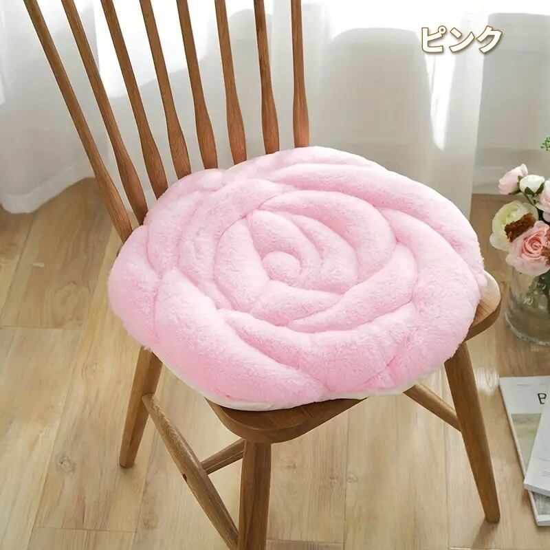 椅子に置くだけで、まるでバラの花が咲いたような華やかさを演出するチェアクッションです。