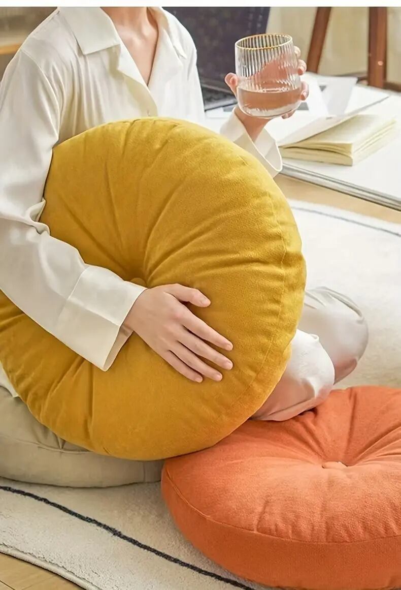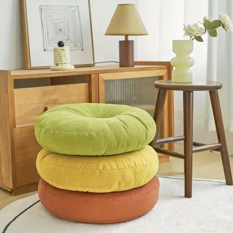 シンプルで可愛い丸型クッションは、北欧風インテリアにぴったりのアイテムです。