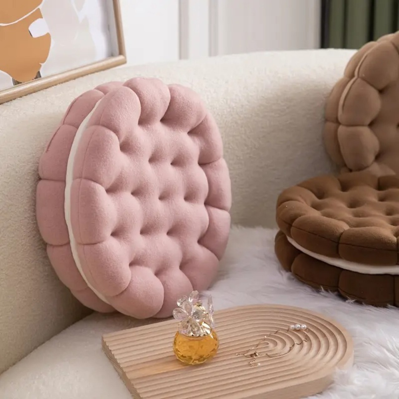 まるで本物のクッキーのようなユニークなクッション、あなたのインテリアに甘いひとときを。