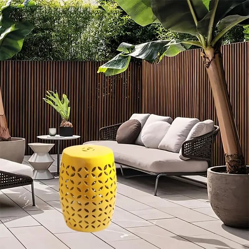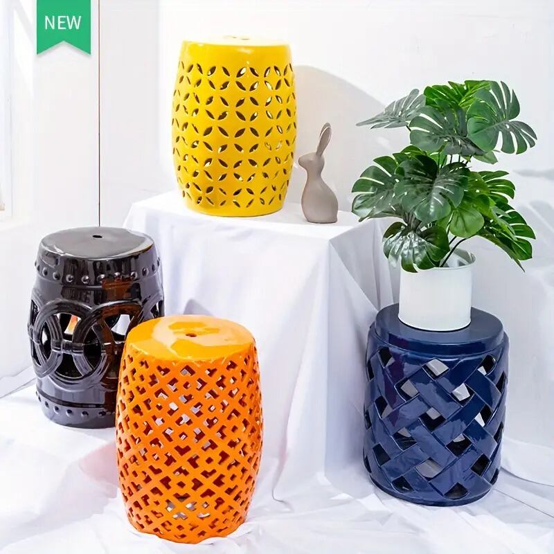 スツール 透かし柄 幾何学模様 エナメル調 ドラム型 個性的 おしゃれ モダン インテリア 北欧 カラフル 選べるカラー セラミック 30×45cm | Calm+(カームプラス) - 北欧風ナチュラルインテリア・モダン家具専門店