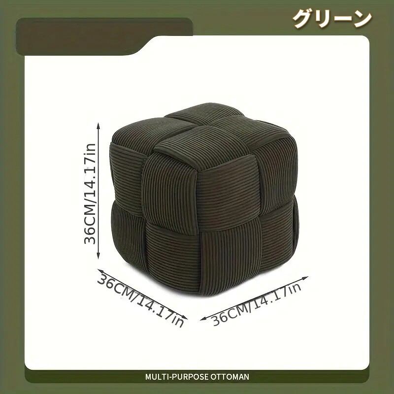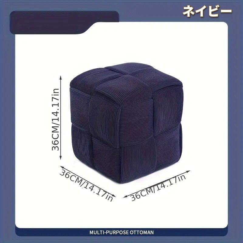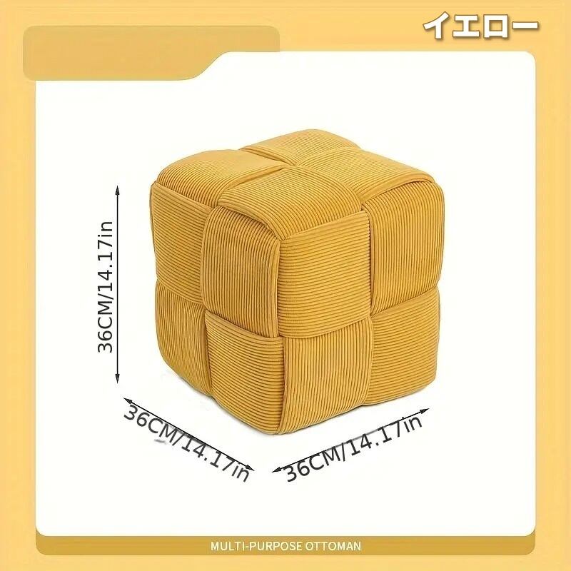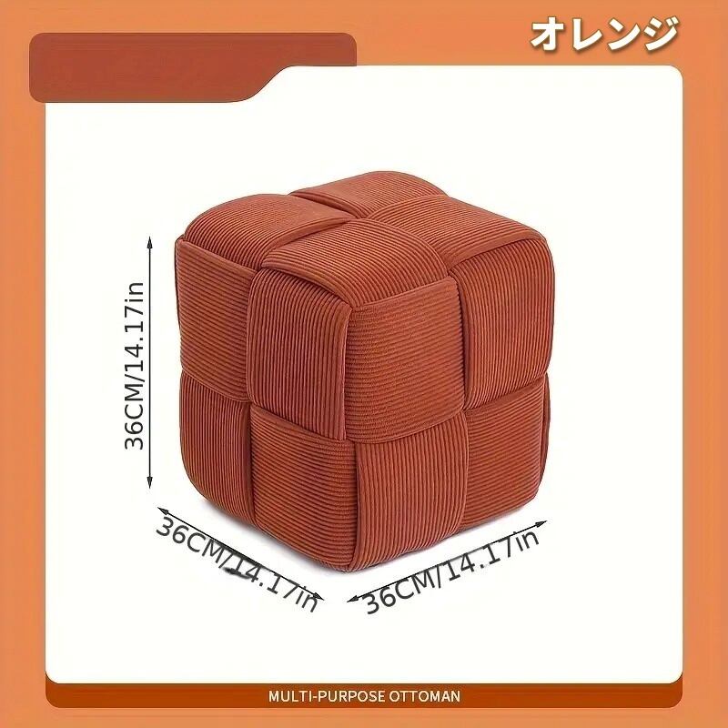 スツール サイコロ型 スクエア コーデュロイ調 編み込み 可愛い シンプル おしゃれ インテリア 北欧 椅子 オットマン 無地 オレンジ イエロー ネイビー グレー ブルー グリーン ファブリック 36×36×36cm | Calm+(カームプラス) - 北欧風ナチュラルインテリア・モダン家具専門店