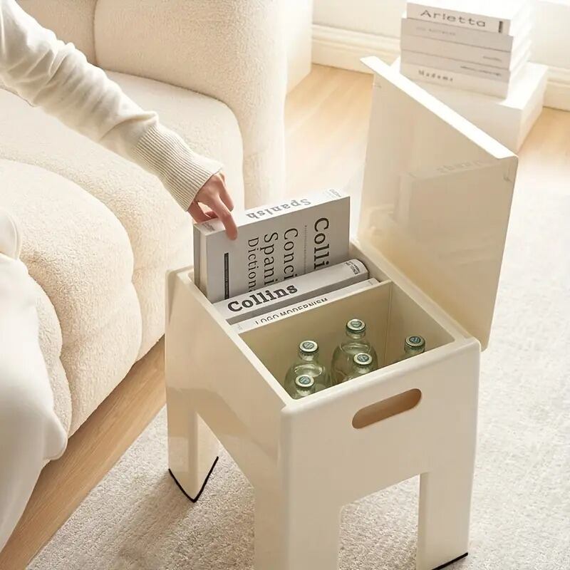 スツール 椅子 踏み台 無地 シンプル モダン おしゃれ インテリア 北欧 多機能 省スペース 蓋付き収納 仕切り付き 取っ手 滑り止め プラスチック 38×32×40cm