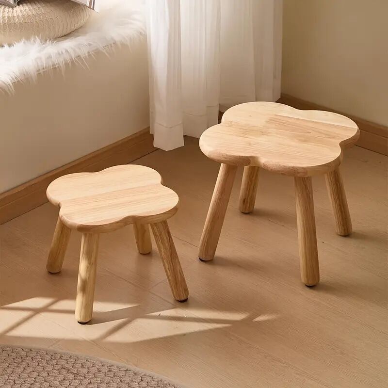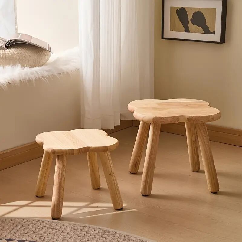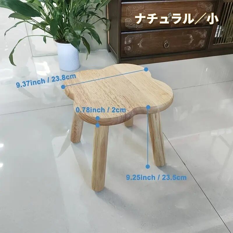 曲線美が魅力のこのスツールは、木目調のナチュラルなデザインで、シンプルながらも可愛らしさを演出します。