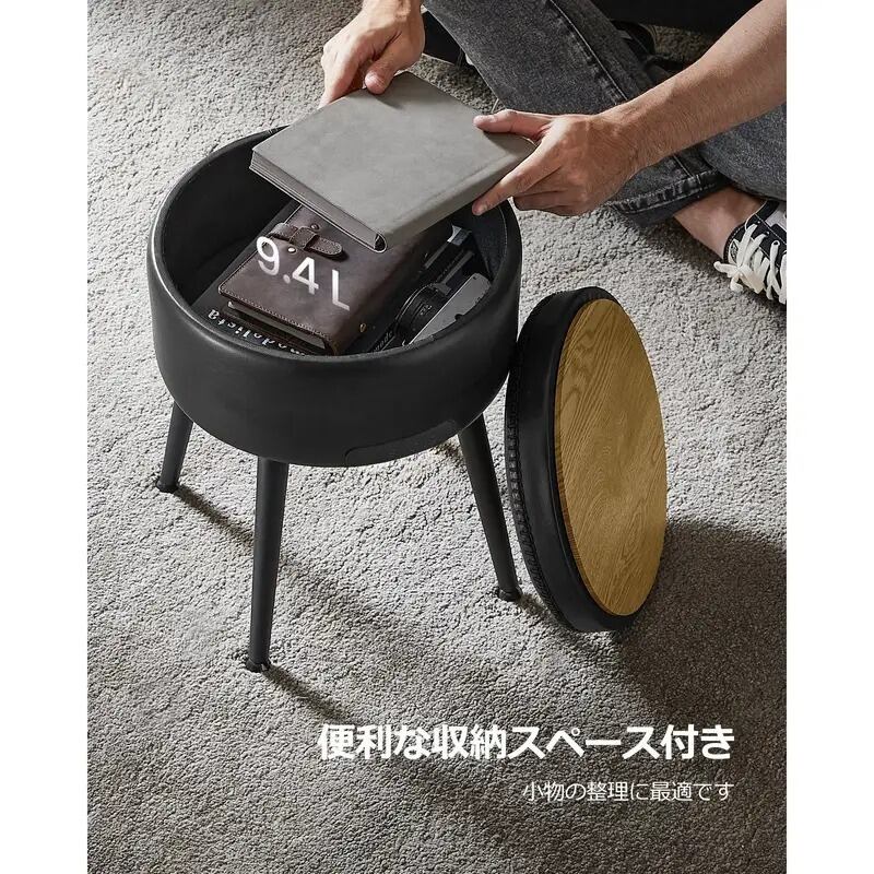 スツール サイドテーブル 2WAY ラウンド 合皮 シンプル かっこいい モダン おしゃれ インテリア 北欧 蓋付き収納 椅子 オットマン 多機能 ブラック 無地 フェイクレザー 合金鋼 32×32×44cm | Calm+(カームプラス) - 北欧風ナチュラルインテリア・モダン家具専門店