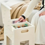 多機能で省スペース設計のこのスツールは、踏み台としても活躍。