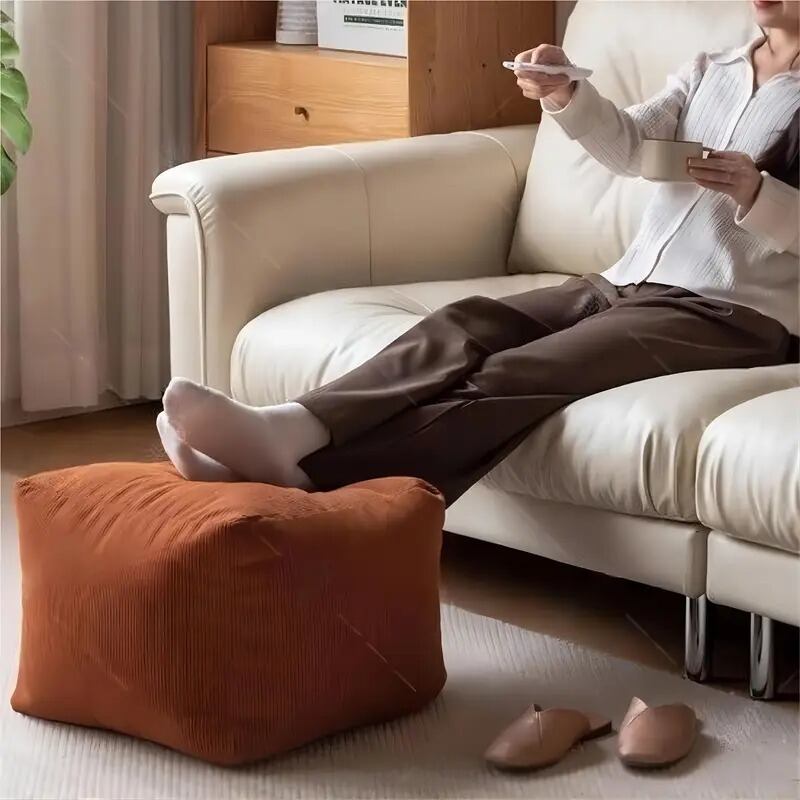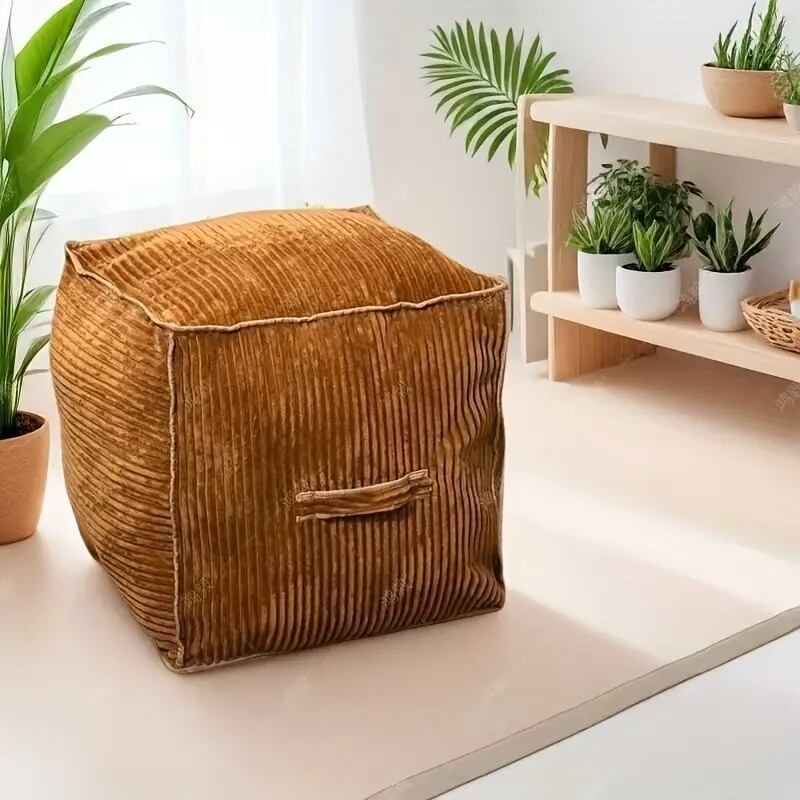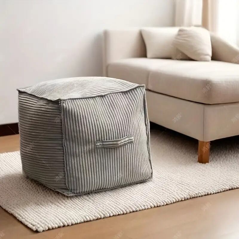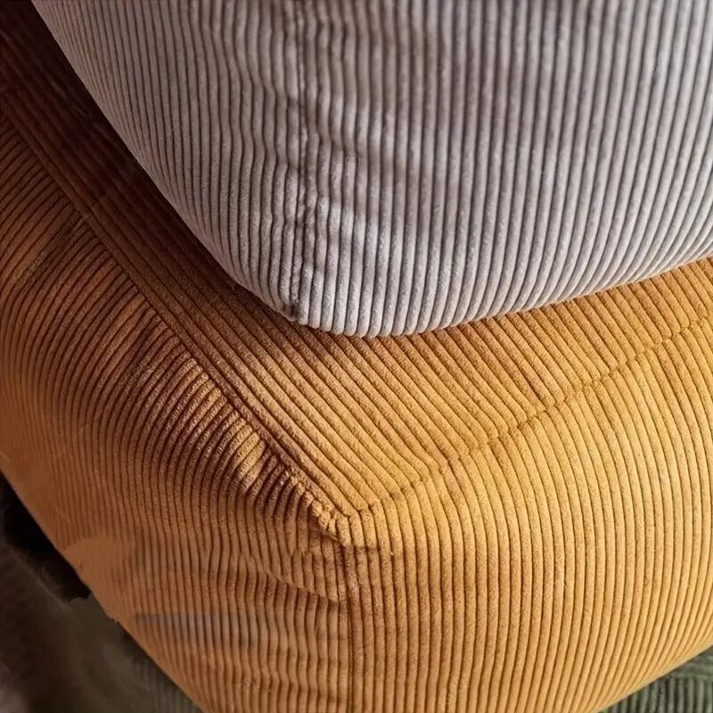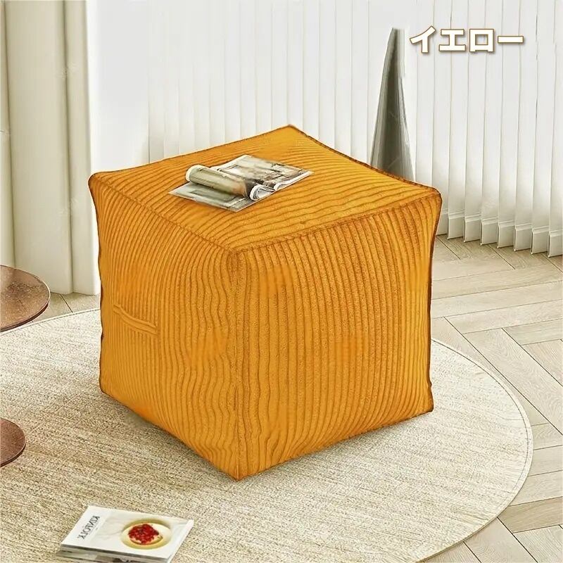 このスツールは、コーデュロイ調の質感が魅力的な正方形デザインで、どんなインテリアにも自然に溶け込みます。