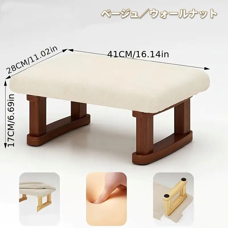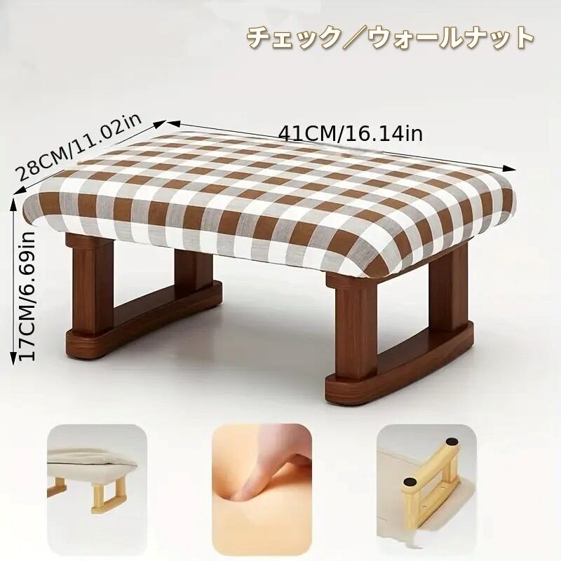 スツール オットマン 木目調 リネン レトロ シンプル おしゃれ インテリア 北欧 省スペース 洗えるカバー ベージュ グリーン チェック オレンジ ナチュラル ウォールナット 木製 41×28×17cm | Calm+(カームプラス) - 北欧風ナチュラルインテリア・モダン家具専門店