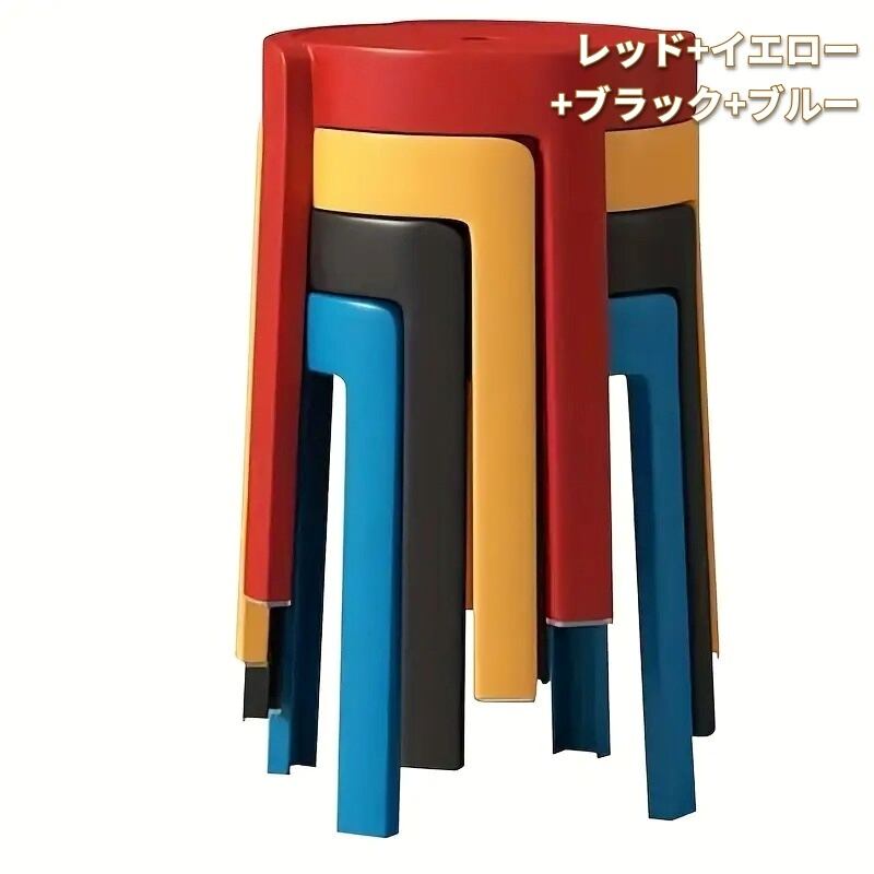 スツール 4点セット スタッキングチェア 重ね置き カラフル シンプル モダン おしゃれ インテリア 北欧 省スペース 移動楽々 無地 ホワイト ブラック カーキ グレー ブルー イエロー レッド グリーン ピンク プラスチック 34×46cm | Calm+(カームプラス) - 北欧風ナチュラルインテリア・モダン家具専門店
