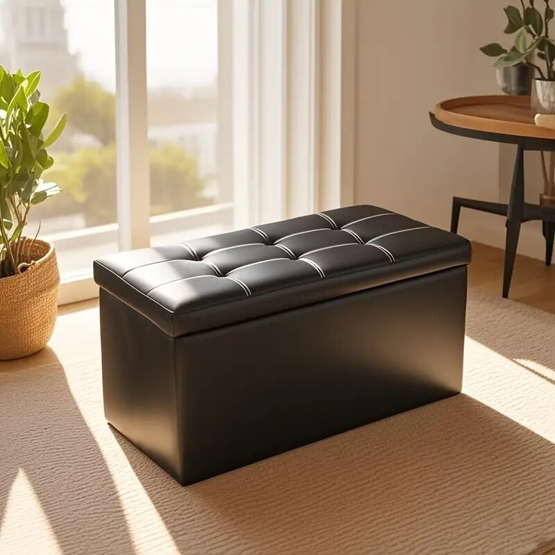 この長方形のスツールは、フェイクレザーを使用したかっこいいデザインで、どんなインテリアにもぴったりです。