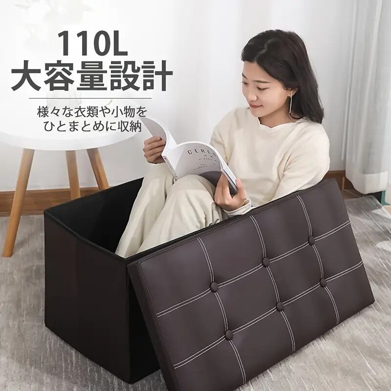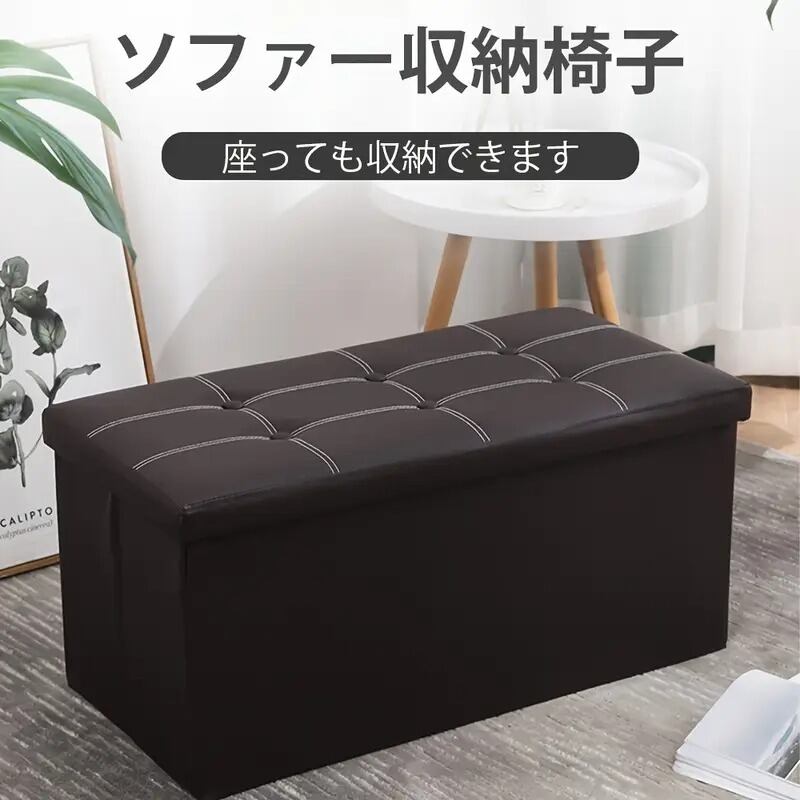 スツール 長方形 フェイクレザー ベンチ 蓋付き収納 シンプル かっこいい モダン おしゃれ インテリア 北欧 多機能 折りたたみ 省スペース 大容量 防水 無地 四角 ブラック 76×38×38cm | Calm+(カームプラス) - 北欧風ナチュラルインテリア・モダン家具専門店