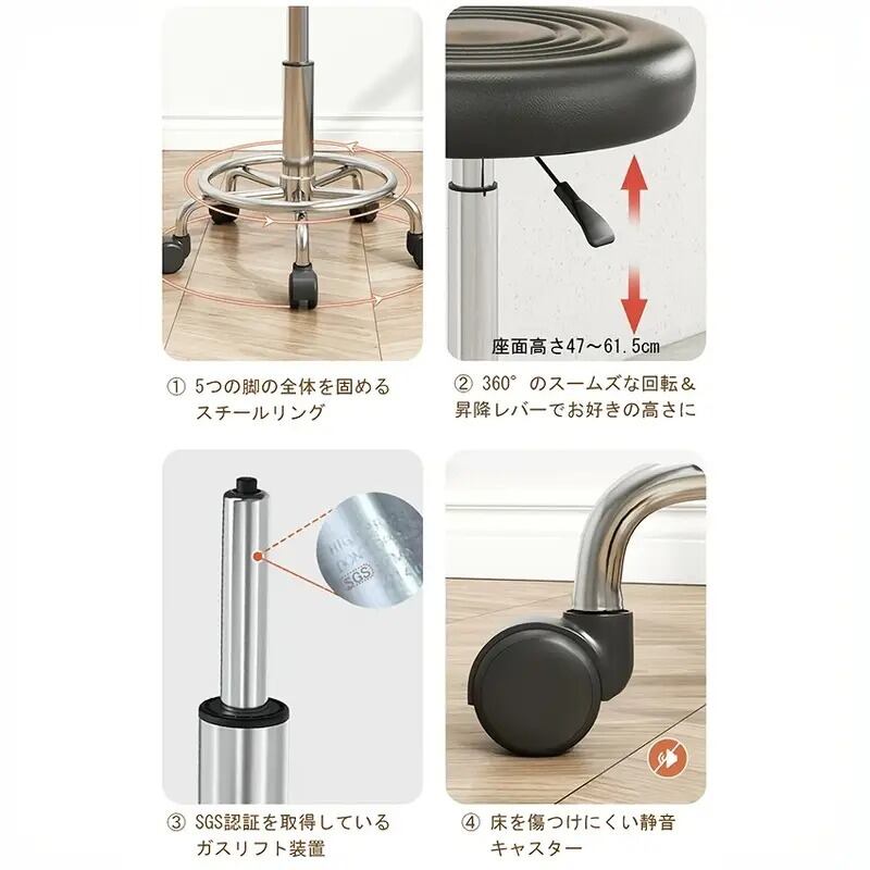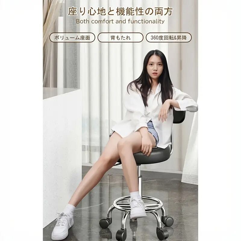 このキャスター付き丸型椅子は、モダンでおしゃれなデザインが特徴です。