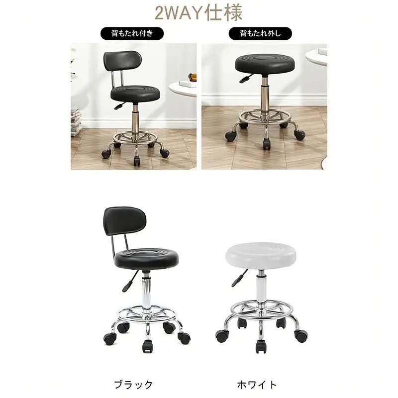 カウンターチェア キャスター付き 丸型椅子 フットレスト おしゃれ モダン スタイリッシュ 高級感 インテリア 北欧 バックレスト 昇降機能 360度回転 ダイニングチェア キッチンチェア カウンター 2way ブラック ホワイト 32×32×47〜62cm | Calm+(カームプラス) - 北欧風ナチュラルインテリア・モダン家具専門店