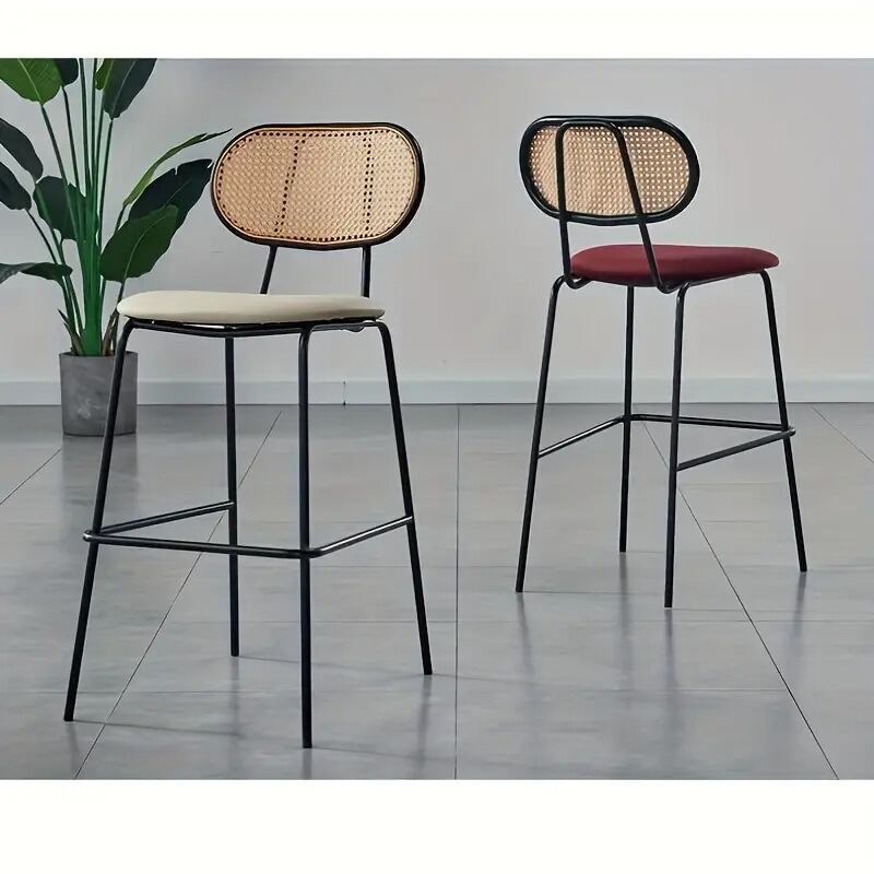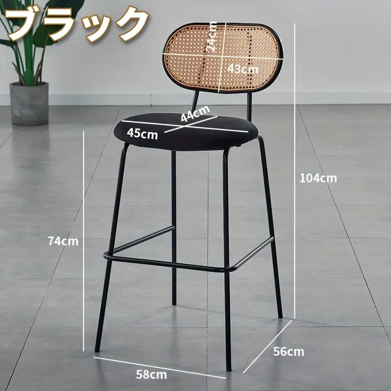 カウンターチェア 籐 バーチェア ハイチェア シンプル おしゃれ ヴィンテージ風 レトロ 背もたれ付き スタイリッシュ インテリア 北欧 カフェ ホテル 新生活 ブラック ワインレッド グリーン ホワイト 58×56×104cm | Calm+(カームプラス) - 北欧風ナチュラルインテリア・モダン家具専門店