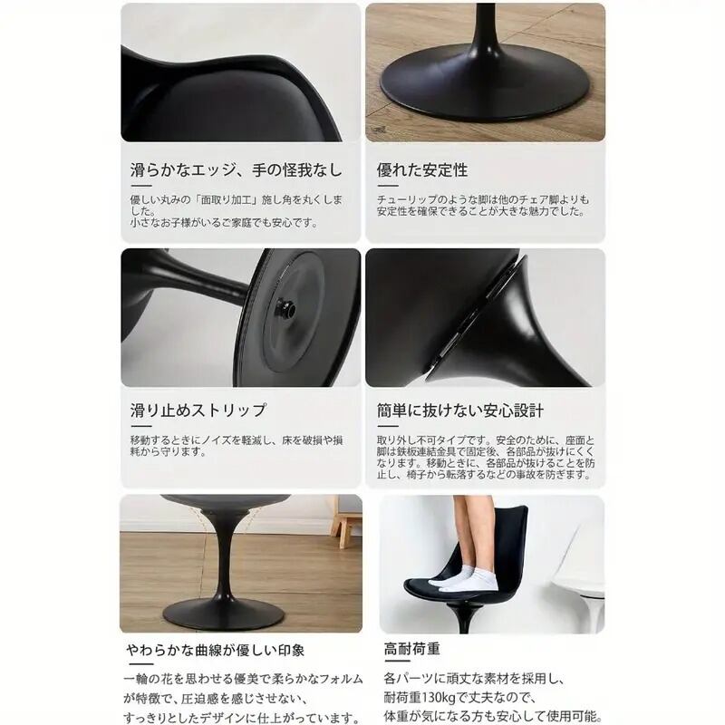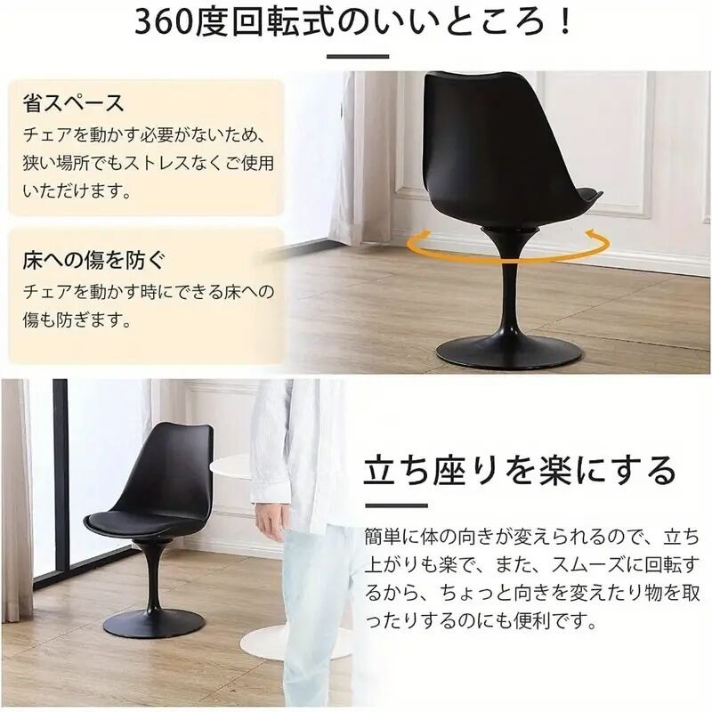 カウンターチェア チューリップ型 ダイニングチェア おしゃれ モダン スタイリッシュ シンプル 高級感 インテリア 北欧 回転椅子 一人暮らし PUレザー リビング オフィス 会議 ブラック ホワイト 48×42×81cm | Calm+(カームプラス) - 北欧風ナチュラルインテリア・モダン家具専門店