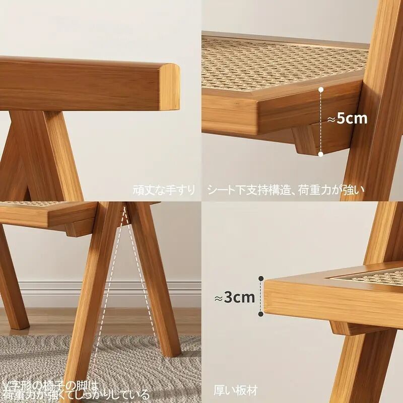 このダイニングチェアは、ラタン編みと木製のフレームが織りなす調和の取れたデザインが魅力です。