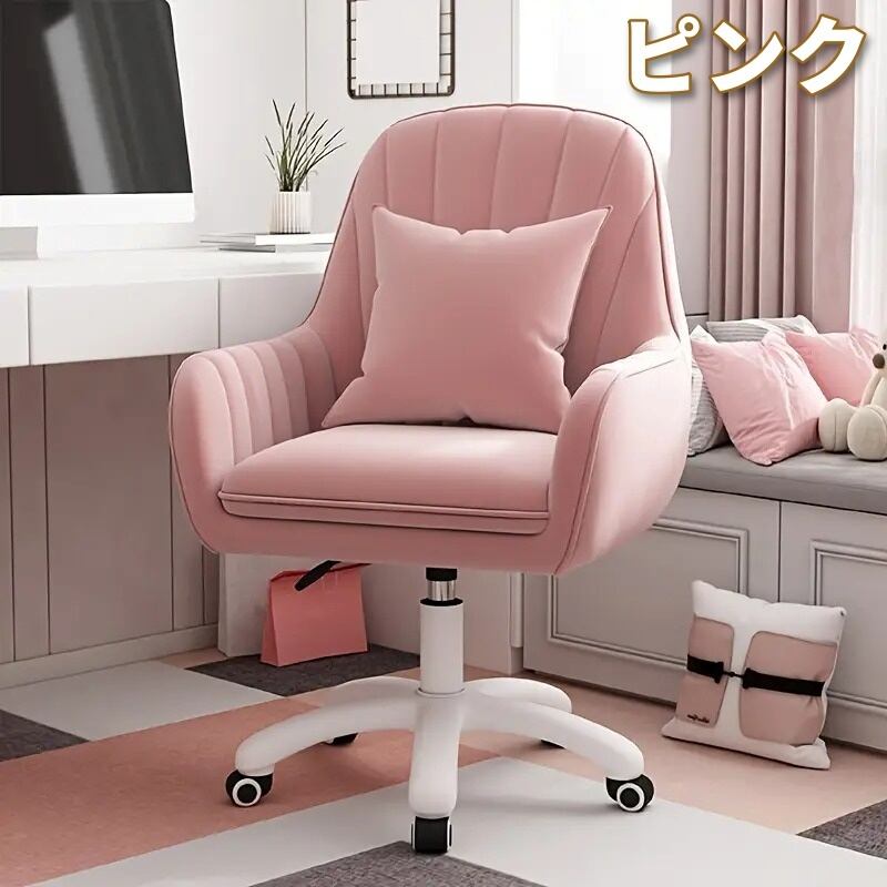 デスクチェア ベルベット クッション付 回転 キャスター モダン おしゃれ エレガント スタイリッシュ インテリア 北欧 オフィス パソコン ゲーミング 事務 昇降 在宅ワーク 勉強 ホワイト ブラック グレー ピンク 55×55×76〜85cm | Calm+(カームプラス) - 北欧風ナチュラルインテリア・モダン家具専門店